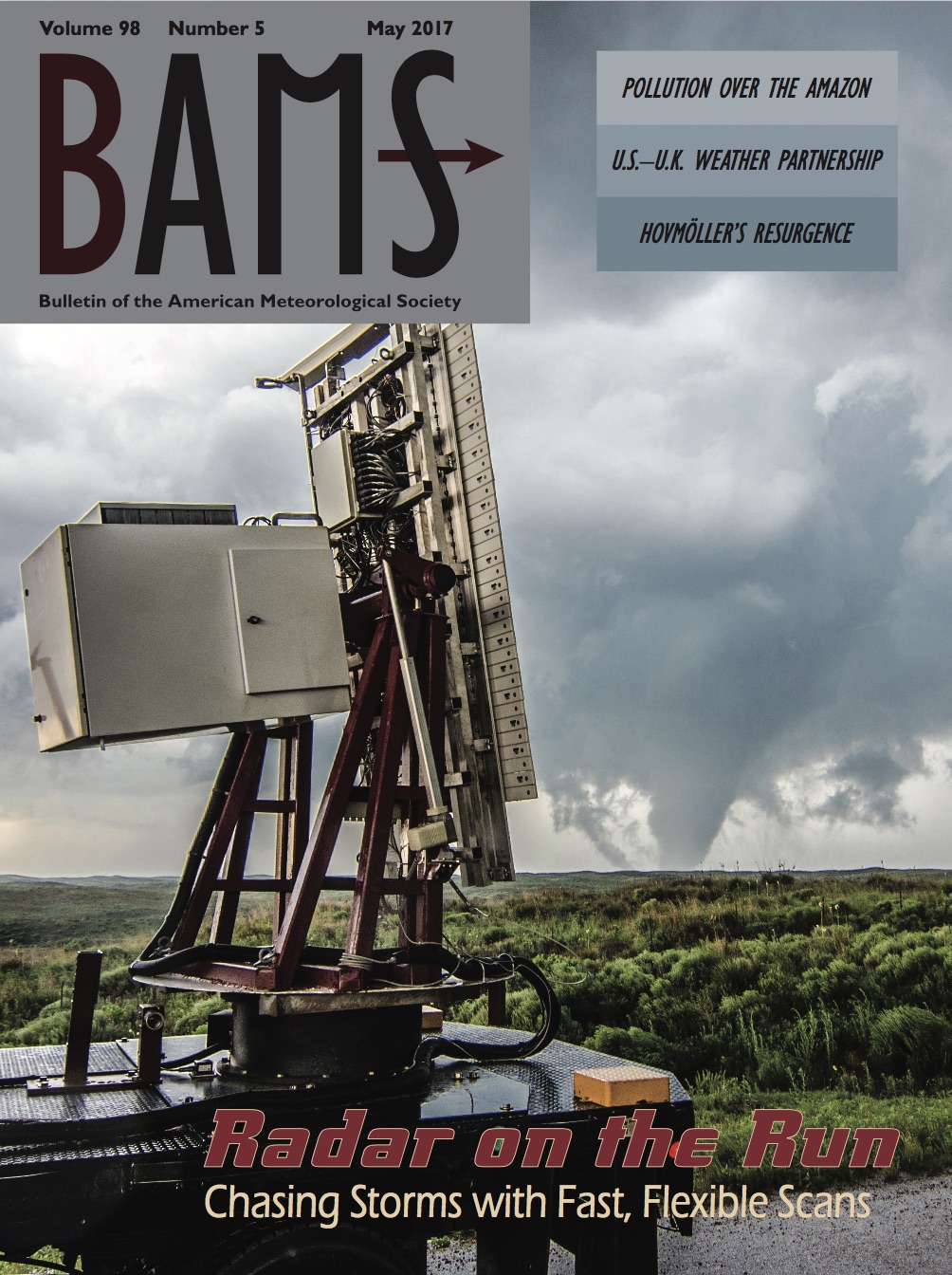 The ARRC's Atmospheric Imaging Radar (AIR) is on the cover of the May 2017 issue of the Bulletin of the American Meteorological Society (BAMS). Click here to see related article, "Observations of Severe Local Storms and Tornadoes with the Atmospheric Imaging Radar"