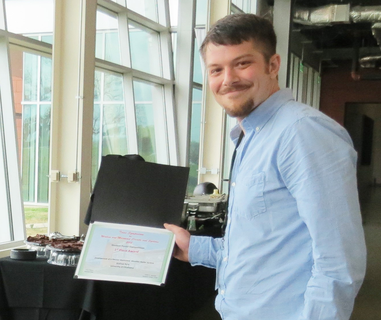 Congratulations to Andrew Byrd, ARRC/ECE Ph.D. student, for being selected as the 1st Place Award recipient in the student poster competition at the 2018 Texas Symposium on Wireless and Microwave Circuits and Systems. His presentation was entitled “Development of a Passive Multistatic Weather Radar System”. In addition to a certificate, Andrew will also receive $600 in Amazon gift cards