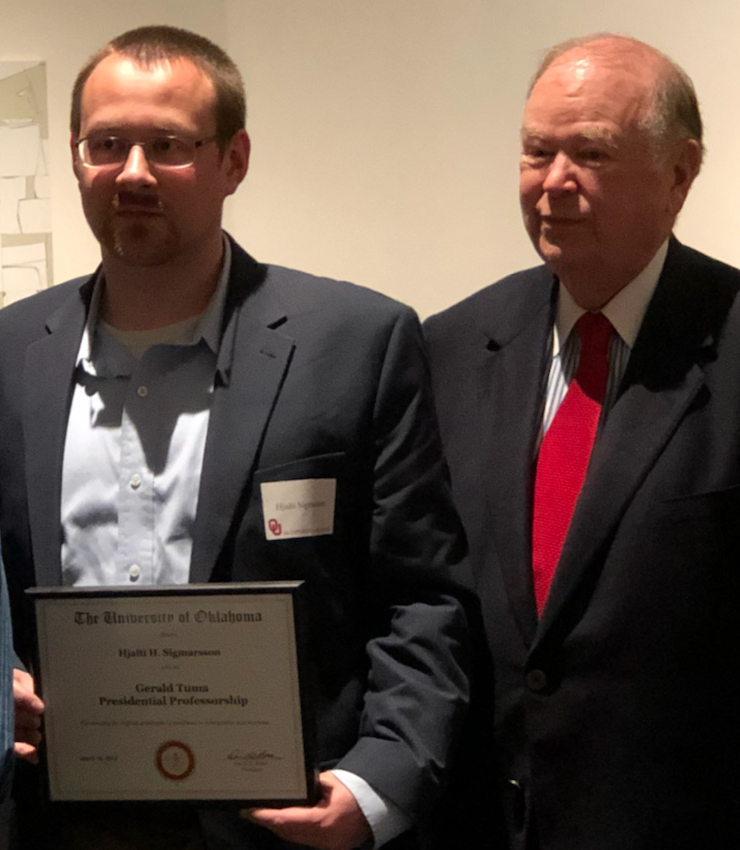 ECE/ARRC professor Dr. Hjalti Sigmarsson was named the recipient of the Gerald Tuma Presidential Professorship at OU’s 2018 Norman campus faculty tribute ceremony on April 10. Supported entirely by private donations, Presidential Professorships were established to recognize, honor, and reward top faculty members who excel in all of their professional activities and who relate those activities to the students they teach and mentor. Congratulations Hjalti!
