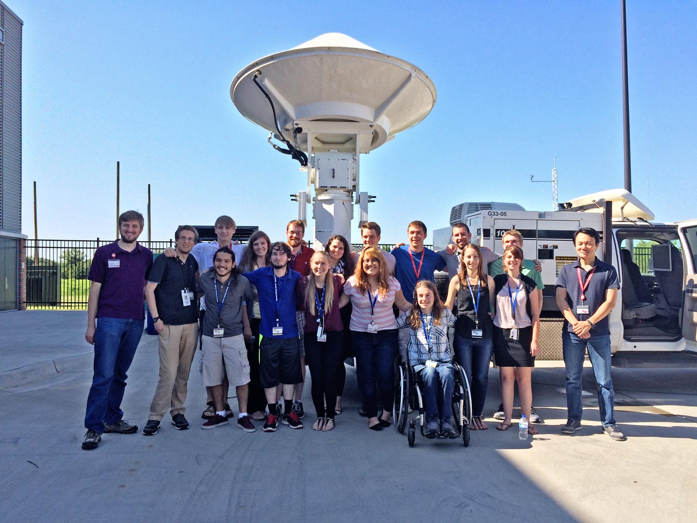 A group of REU (Research Experiences for Undergraduates) students visited the ARRC on July 20 to learn more about radar hardware systems and got a taste of operating two of the ARRC radars--the RaXPol, shown in the picture, and the PX-1000.