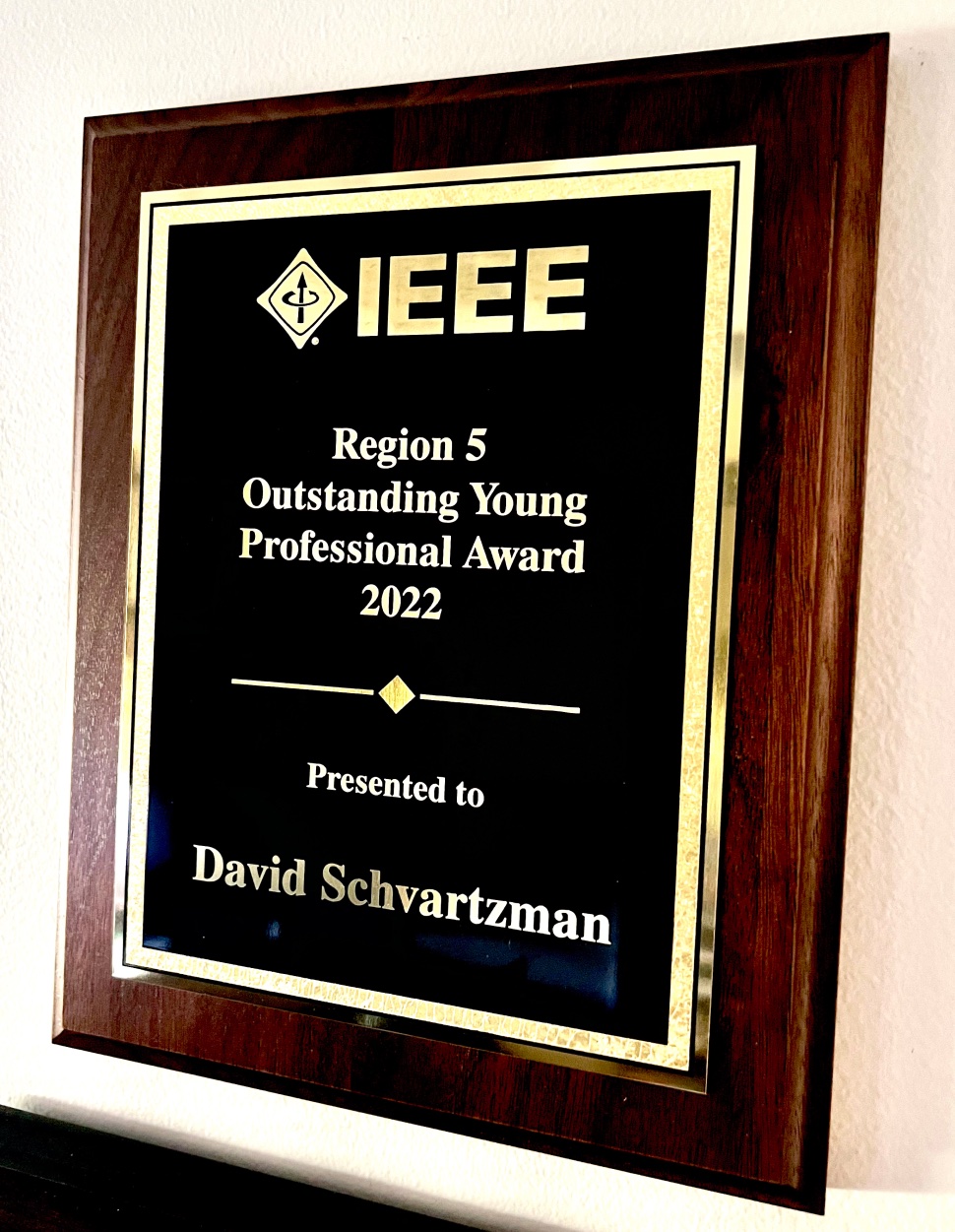 Dr. David Schvartzman, SoM Assistant Professor and member of the ARRC, received the “2022 IEEE R5 Outstanding Young Professional” Award. This award is designed to recognize those substantive projects or achievements of a relatively short nature but which have left an undeniable imprint on the fabric of Young Professionals.