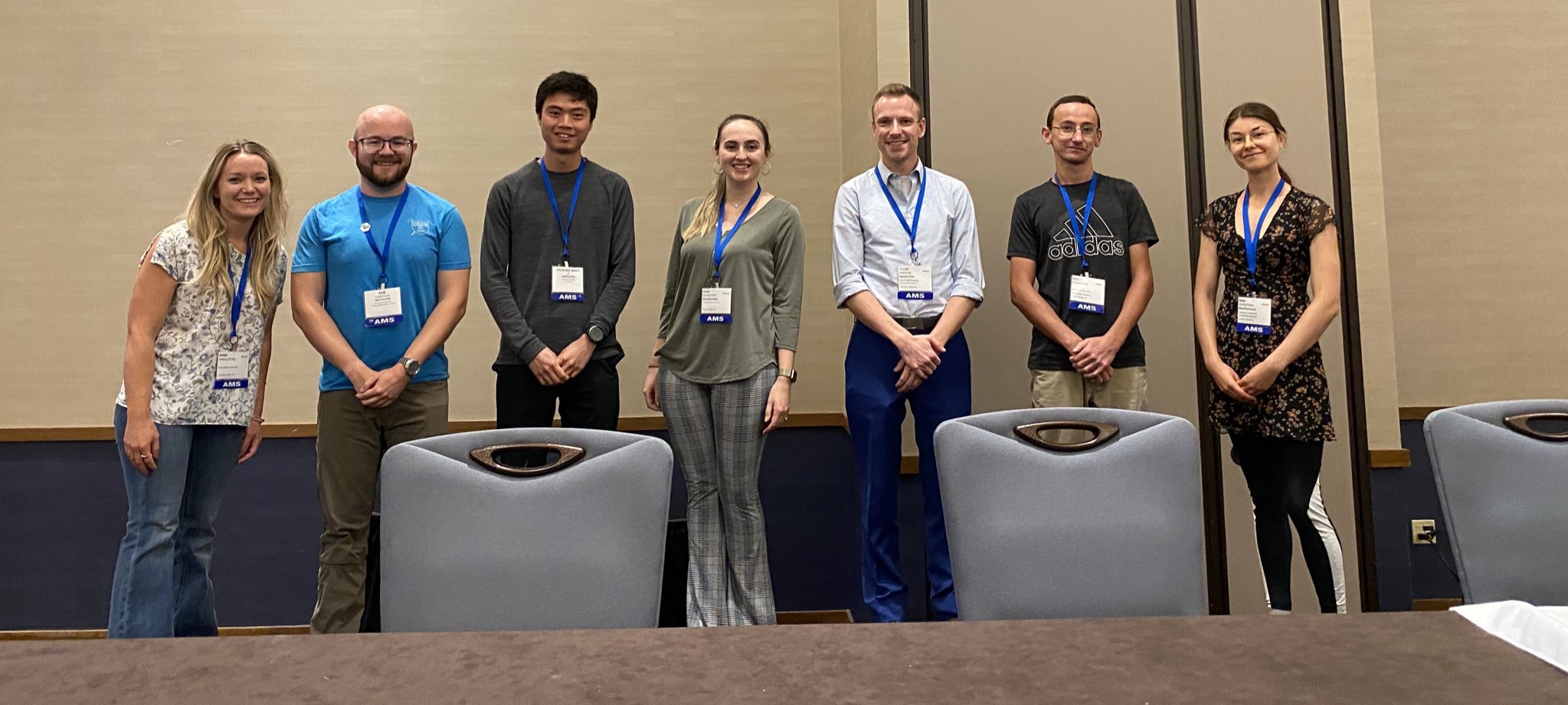 Congratulations to SoM/ARRC graduate student Sam Emmerson (second from left) for receiving 3rd place in the poster contest at the AMS 40th Conference on Radar Meteorology, held recently in Minneapolis, MN. Sam's poster highlighted his research on the validation of multistatic wind retrievals using a vertical pointing mobile radar. (S.W. Emmerson, R.D. Palmer, D.J. Bodine, D. Schvartzman, P. Kirstetter, and P.S. Skinner, 2023: Validation of Multistatic Wind Retrievals Using a Vertically Pointing Mobile Radar. 40th Conf. on Radar Meteorology, Minneapolis, MN, Amer. Meteor. Soc., P74.)
