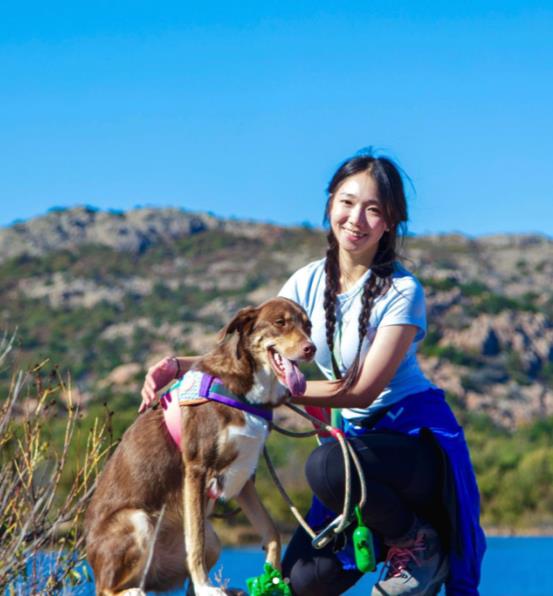 "I have two dogs, Bee and Cream, and I like to spend most of my free time with them. We go for a walk, hike, and swim."